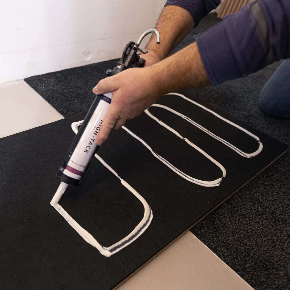 Step 3: Apply the sealant evenly to the back of the panel. It's best to spread the sealant over the entire panel in one smooth motion. Position the panel in the desired location on the surface and press firmly.